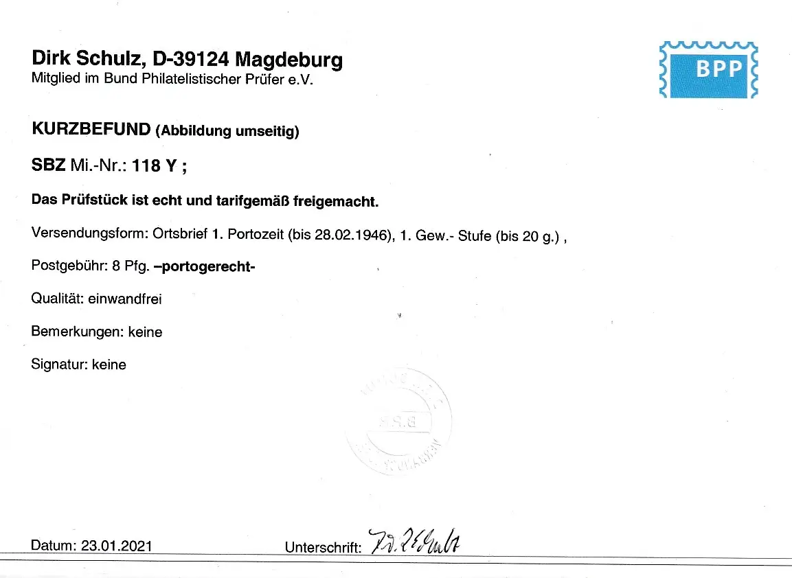 Erhaltung ist einwandfrei, s. Kurzbefund Schulz BPP. Michelwert 140,00 €.