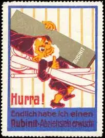 Hurra, endlich habe ich einen Rubinit-Abziehstein erwischt. Zwerg, Größe/Zustand: 6x4 , guter Zustand, Original alte Reklamemarke die seinerzeit für die Werbung benutzt wurde