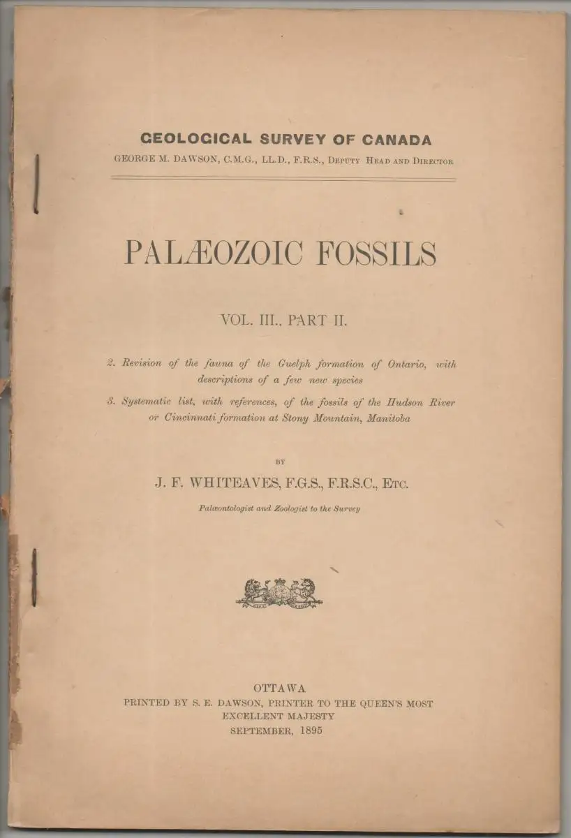 Whiteaves, Joseph Frederick: Palæozoic fossils Vol. 3, Pt. 2: Revision of the fauna of the Guelph formation of Ontario, with descriptions of a few new species.