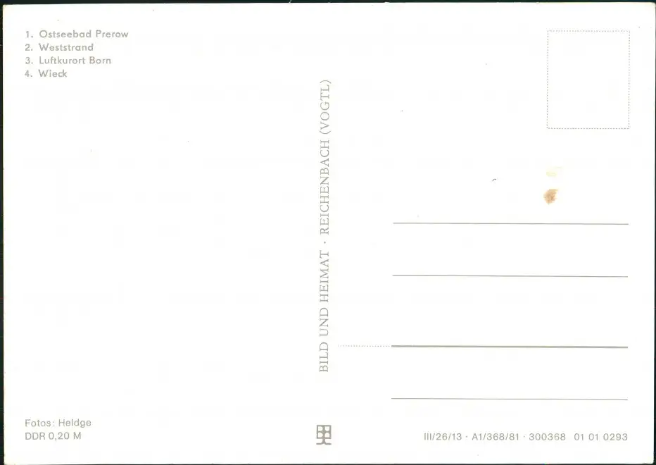 Name: 1. Ostseebad Prerow, 2. Weststrand, 3. Luftkurort Born, 4. Wieck