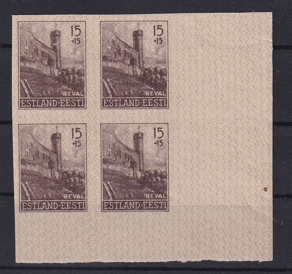 Wiederaufbau 15+15 K. ungezähnt Eckrandviererblock **