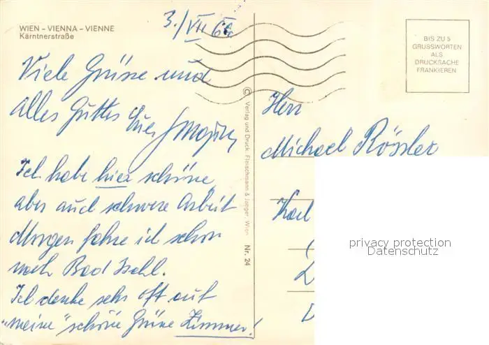 Wien Kaerntnerstrasse Wien postalisch gelaufen 1969 Erhaltung siehe scans [WerneD78] WernPID7