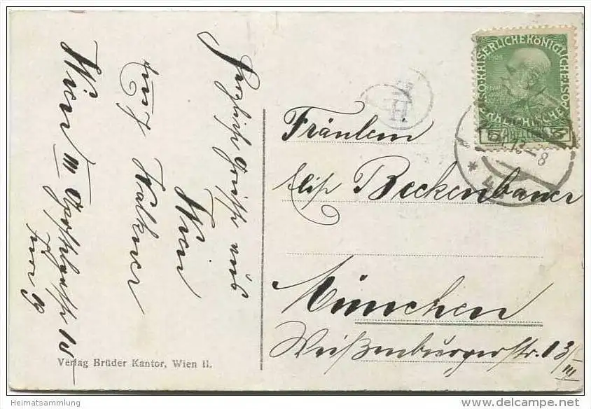 Wien - Praterstrasse - Verlag Brüder Kantor Wien II - Gebrauchsspuren - Eckknick unten links (E12190) gel. 1913