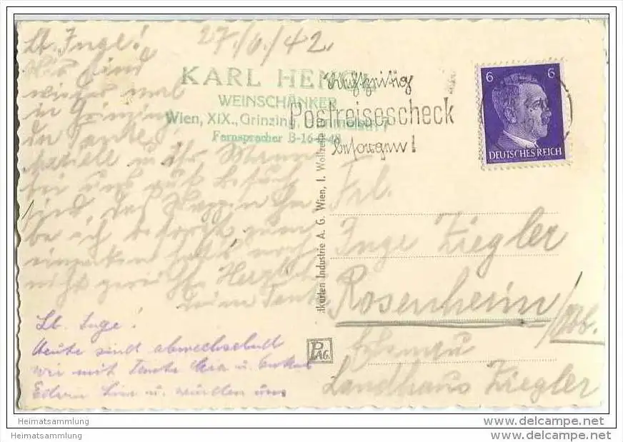 Wien XIX. Grinzing - Verlag Postkarten Industrie AG Wien - leichte Gebrauchsspuren (G27095) gel. 1942