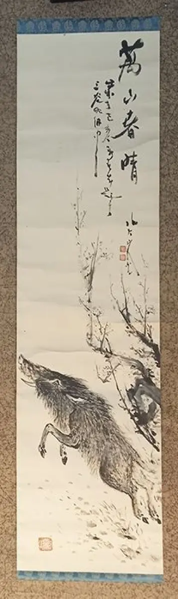 Bemerkungen: Hand painted paper scroll with a wild boar.
