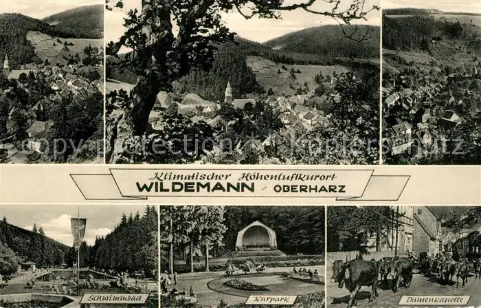 Wildemann Schwimmbad Kurpark Dameskapelle Panorama Wildemann postalisch gelaufen 1958 Erhaltung siehe scans [KathaD81] Kathoren