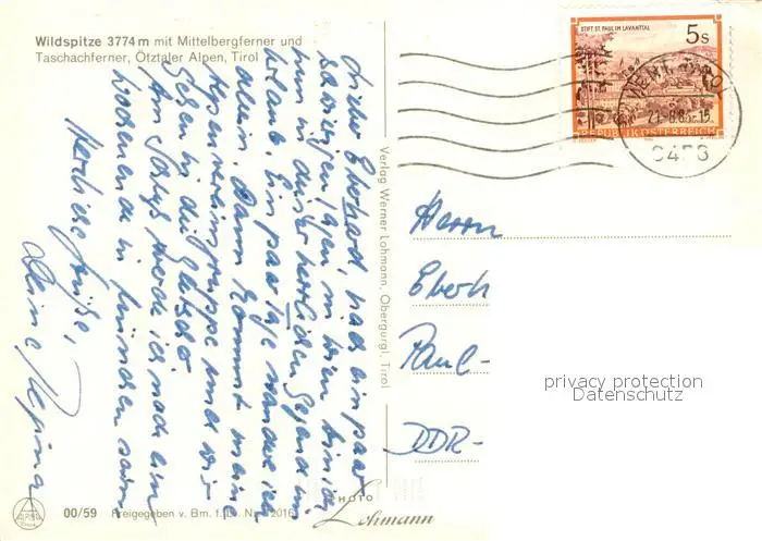 Wildspitze mit Mittelbergferner und Taschachferner Wildspitze postalisch gelaufen 1985 Erhaltung siehe scans [WerneD78] WernPID7