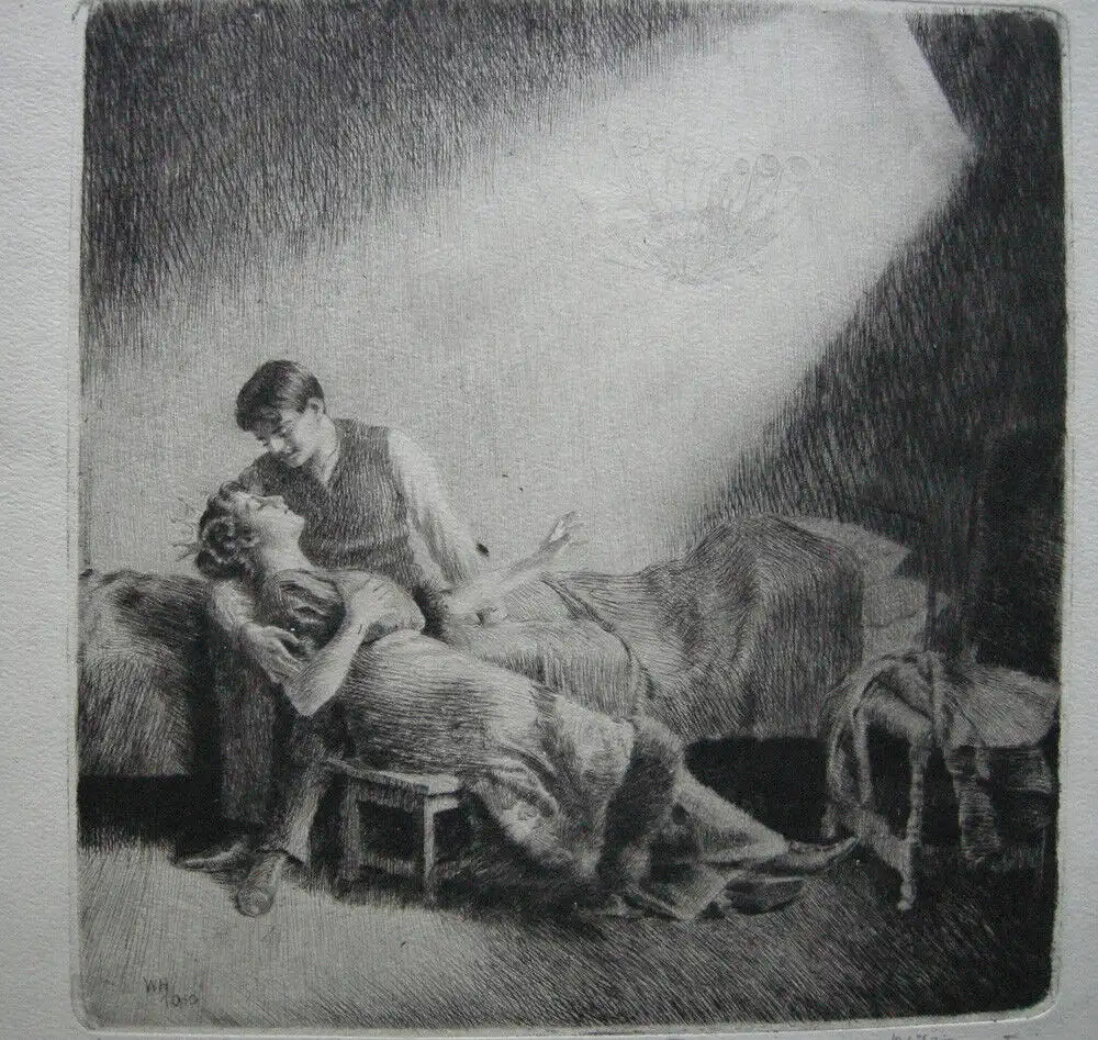 Wilhelm Hörwarter (1883-1963) Märchen Orig. Radierung signiert 1910
