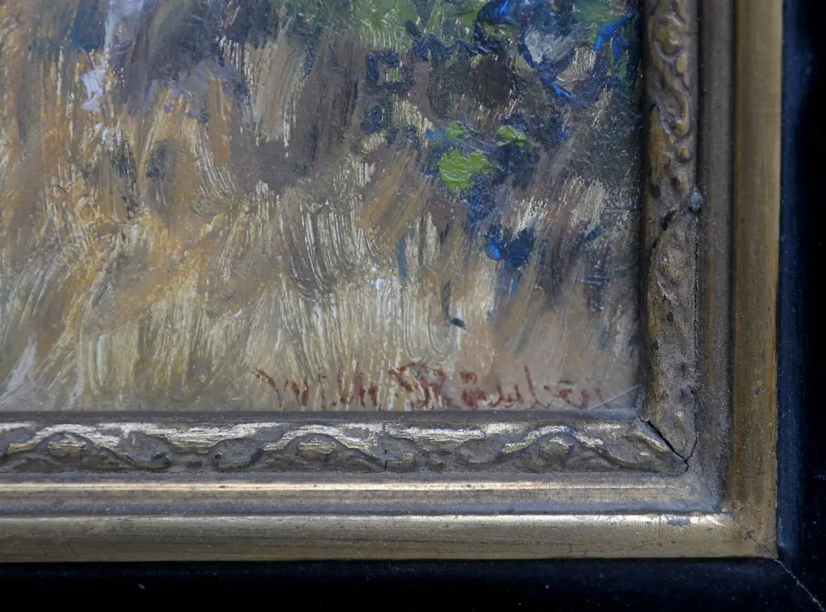 Öl a./Karton, 31,5 x 27 cm. Rechts unten signiert. Stuckrahmen (Maße mit Rahmen: 52 x 48 cm).