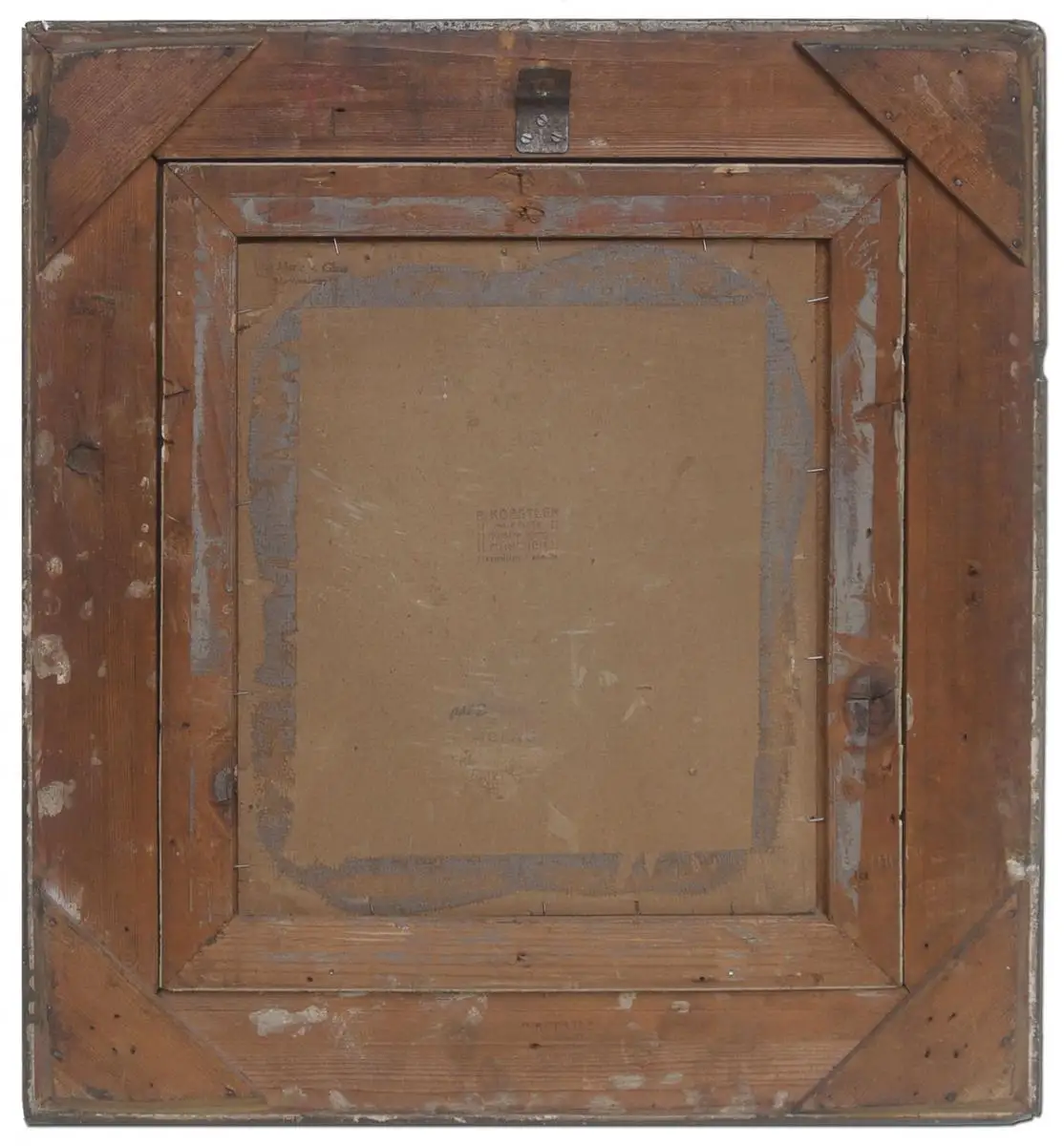 Gemälde in guten originalen Zustand, Rahmen beschädigt und mit fehlenden Stuckteilen.