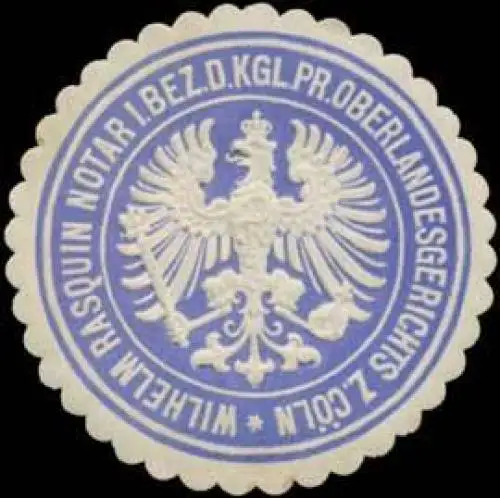 im Bezirk des Kgl. Oberlandesgerichts zu Cöln, blau, weiß, geprägt, Größe/Zustand: 4 , guter Zustand, Original Verschluss-Siegelmarke aus Papier welche früher von Behörden, Firmen etc. zum Versiegeln der Briefe benutzt wurden