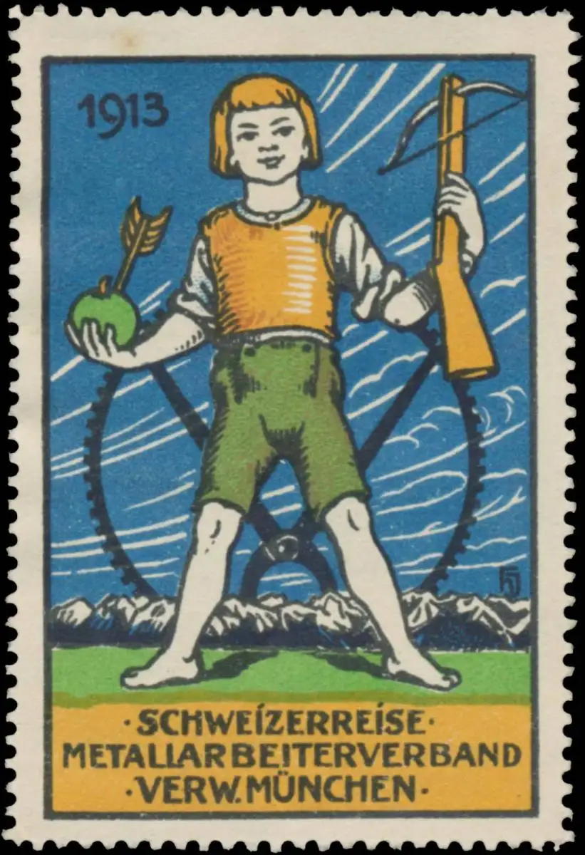 Schweizerreise Metallarbeiterverband, Verwaltung München, Größe/Zustand: 6x4 , guter Zustand, Original alte Reklamemarke die seinerzeit für die Werbung benutzt wurde