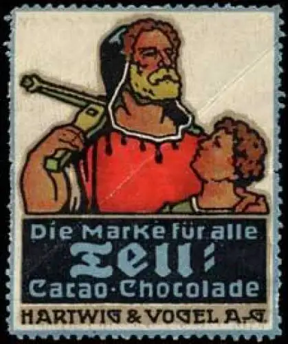 Tell Cacao-Chocolade, Kakao, Größe/Zustand: 5x4 , leicht geknickt, Original alte Reklamemarke die seinerzeit für die Werbung benutzt wurde
