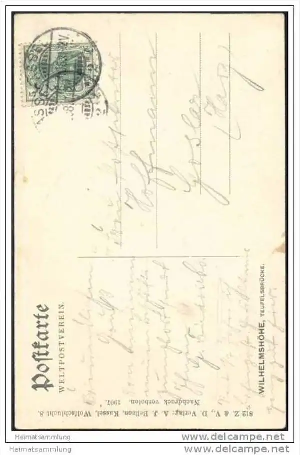Wilhelmahöhe - Teufelsbrücke - Verlag A. J. Bellson Kassel1907 (G22081) gel. 1908