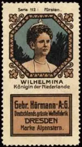 Waffel Marke: Alpenstern, Serie 112, Fürsten, Größe/Zustand: 6x3 , guter Zustand, Original alte Reklamemarke die seinerzeit für die Werbung benutzt wurde