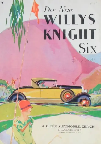 Willys-Knight Six Modellprogramm 1928 Automobilprospekt (7365)