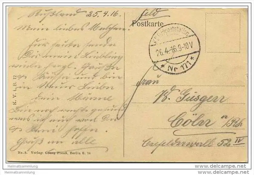 Wilna - Tierpark-Brücke - Verlag Georg Preuss Berlin - Feldpost - kleine Eckknicke oben (E10154) gel. 1916