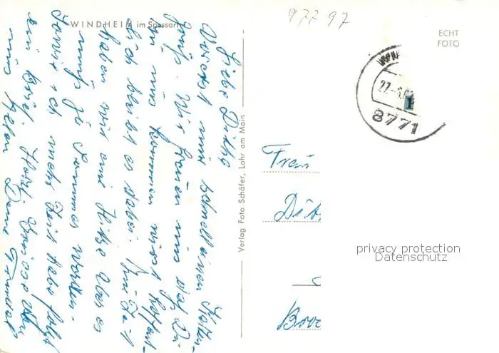 Windheim_Hafenlohr Panorama Spessart Windheim Hafenlohr postalisch gelaufen 1967 Erhaltung siehe scans [FriedD77] Frierer
