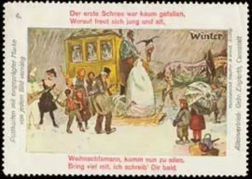 Postkarten mit eingeprägter Marke von jedem Bild vorrätig. Alleinvertrieb Gebr. Englerth, Cannstatt, Weinhachten, Weihnachtsmann, Größe/Zustand: 5x8 , fleckig, Original alte Reklamemarke die seinerzeit für die Werbung benutzt wurde