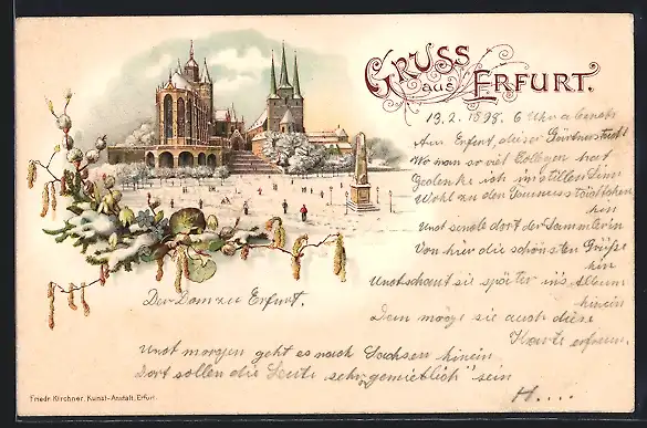 Winter-Lithographie Erfurt, Dom zu Erfurt um 1900