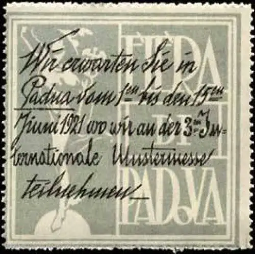 3. Internationale Mustermesse - Fiera di Padua, Italien, Größe/Zustand: 5x5 , guter Zustand, Original alte Reklamemarke die seinerzeit für die Werbung benutzt wurde
