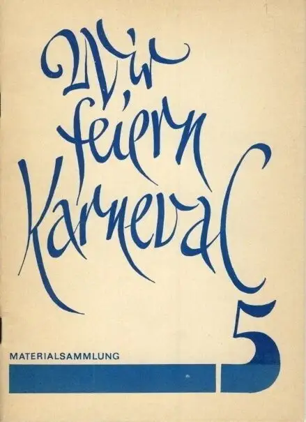 guter bis sehr guter Zustand, geringe Gebrauchs- und Alterungsspuren: Umschlag teils etwas vergilbt / verschmutzt, aber Seiten sauber und ordentlich, Mit diesem 5. Teil unserer Materialsammlung Wir feiern Karneval" legen wir Akkordeon / Klavier-Ausgaben vor, die sich für Karnevalveranstaltungen eignen. Darunter finden Sie solche beliebten Titel wie "Ich hab' keinen Zylinder" und "Sing, mei Sachse sing". Wir danken dem Harth Musik Verlag Leipzig für die freundliche Genehmigung zum Abdruck dieser Titel. Außerdem enthält diese Sammlung Titel aus der Karnevalbewegung und gesellige Beiträge für Kinderkarnevalveranstaltungen." - Bumsvalera - Das muß man wissen! - Du kannst so herrlich küssen - Ich hab' keinen Zylinder - Das war ein Meisterschuß - In meinen Armen liegst du richtig - Macht doch mal 'ne Damenwahl - Mit Brille wär' das nicht passiert - Sing, mei Sachse, sing - Heut gehn wir nicht ins Heia-Bett - Die Biene Liane - Limerick-Schunkelwalzer - Tier-Schunkelwalzer - Der Wasserfloh - Tierkonzert - Auf der Elbe, bei Berlin - Heute wolln wir alle fröhlich sein und singen - Man soll im Leben - bitteschön - Wir feiern Karneval - Wir feiern heut, kartoniert