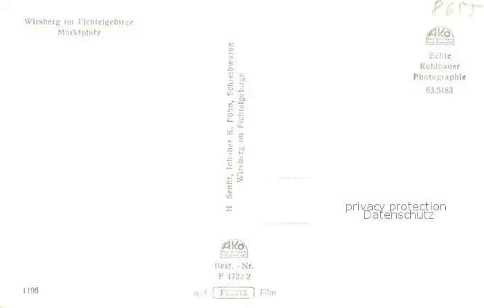 Wirsberg Marktplatz Brunnen Wirsberg postalisch nicht gelaufen 1921-1965 Erhaltung siehe scans [WerneD78] WernPID7