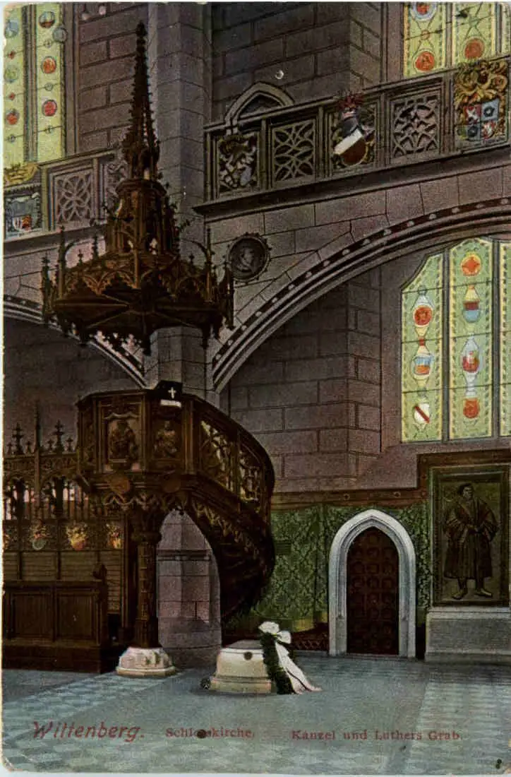 Wittenberg, Schlosskirche, kanzel und Luthers Grab -377708