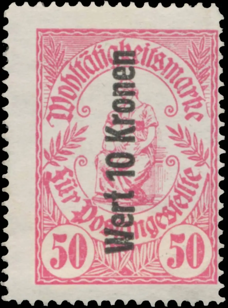 50, hellrot, Wert 10 Kronen, Post, Österreich, Spendenmarke, Größe/Zustand: 4x3 , guter Zustand, Original alte Reklamemarke die seinerzeit für die Werbung benutzt wurde