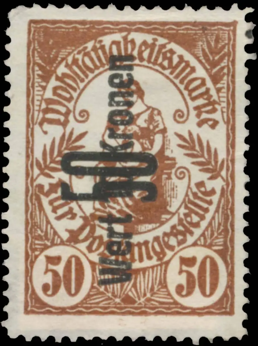 50, braun, Wert 50 Kronen, Post, Österreich, Spendenmarke, Größe/Zustand: 4x3 , guter Zustand, Original alte Reklamemarke die seinerzeit für die Werbung benutzt wurde