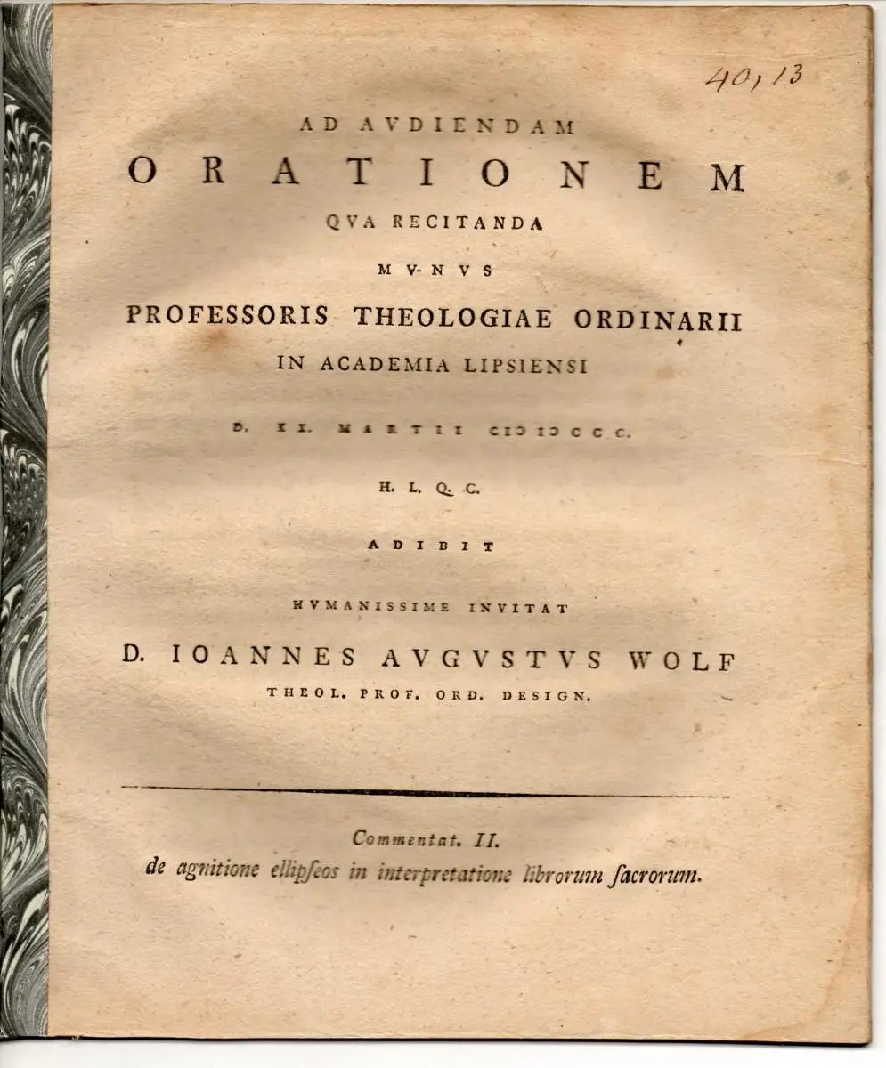Wolf, Johann August: De agnitione ellipseos in interpretatione librorum sacrorum, Commentat. II. Universitätsprogamm.