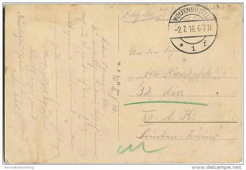 Wolfenbüttel - Harztor Wall mit Kaffeehaus - Feldpost - Gebrauchsspuren (E36389) gel. 1916
