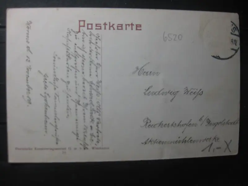 ca. 1908; Unschärfen, Spiegelungen, Verbiegungen sind allein durch das abfotografieren bedingt; Karte ist beidseitig abgebildet, Erhalt siehe Scan; ist das Foto qualitativ nicht aussagekräftig genug, kann es besseres Foto angefordert werden. Rückgabe bei Karten ist generell ausgeschlossen.