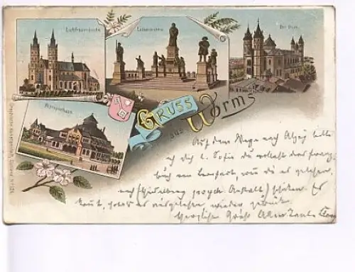 Worms a.Rhein Grußlitho 4 Bilder bahnpgl1897 18.616