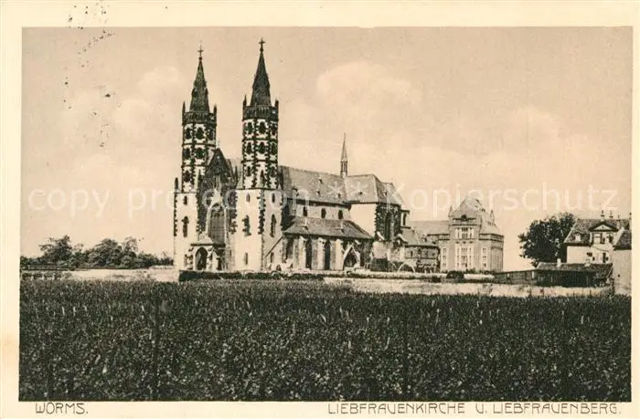 Worms_Rhein Liebfrauenkirche Liebfrauenberg Worms Rhein postalisch gelaufen 1912 Erhaltung siehe scans [FriedD77] Frierer