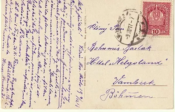 Bemerkungen: Gelaufen Wiener Neustadt - Vamberk, 1917. Ein Militärflugzeug fliegt über Wiener Neustadt. Im Text auf der Rückseite der Ansichtkarte findet sich ein Hinweis auf die Flieger-Ersatztruppe.