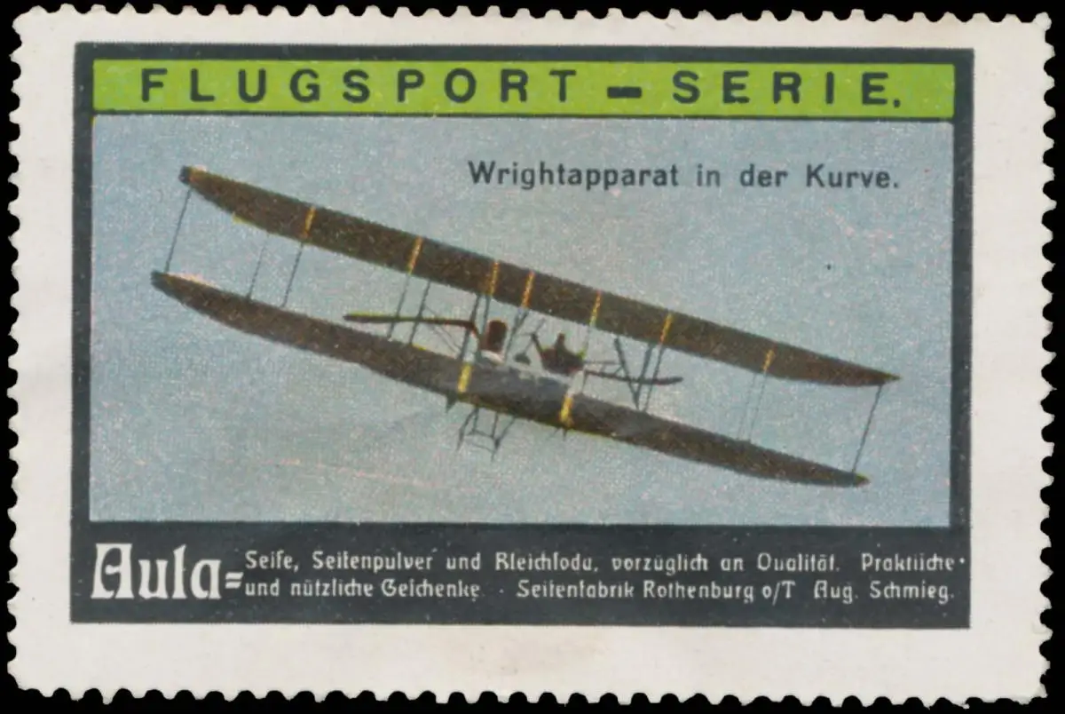 Flugsport-Serie, Flugmarke, Flugzeug Wright, , Aula Seife- und Seifenpulver, Größe/Zustand: 4x6 , guter Zustand, Original alte Reklamemarke die seinerzeit für die Werbung benutzt wurde