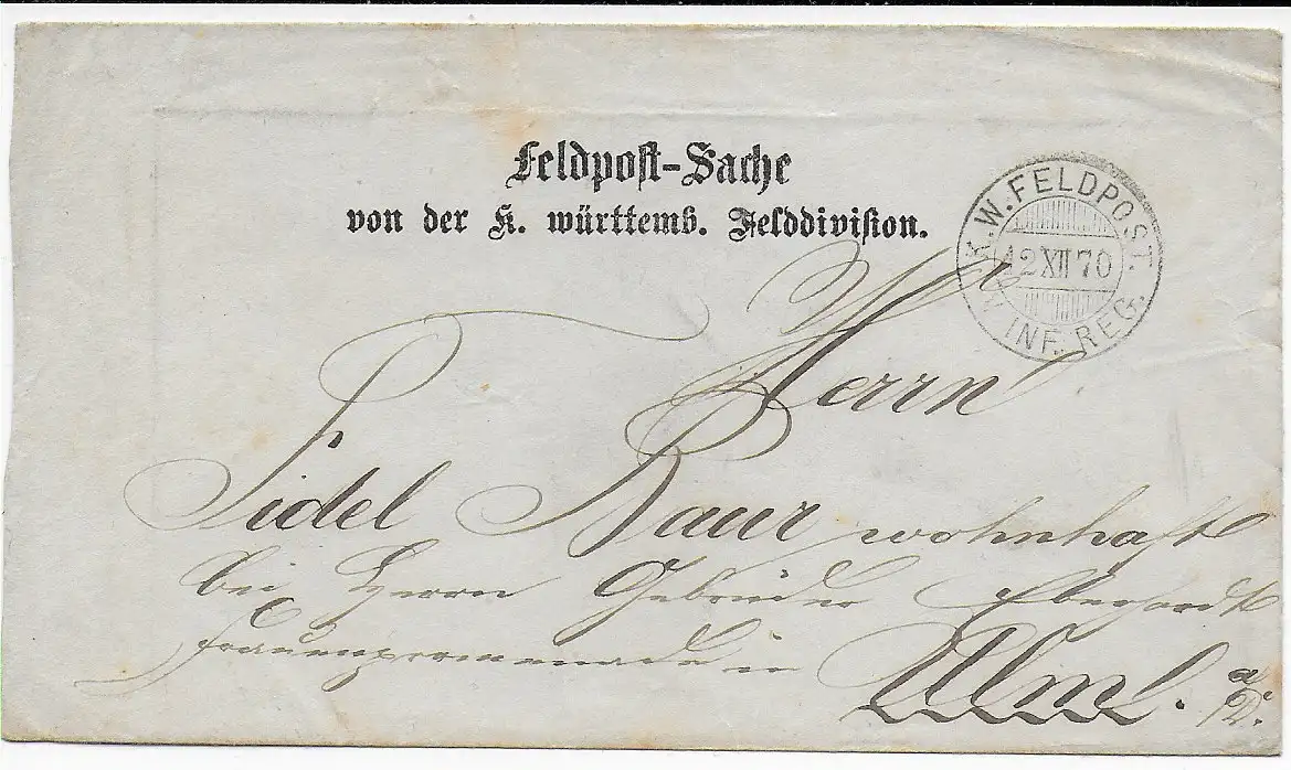 Würrtembergische Feldpost-Sache 1870 nach Ulm