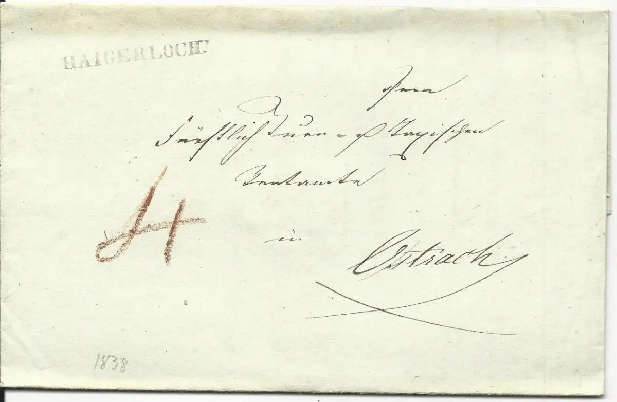 Württemberg 1838, L1 HAIGERLOCH klar auf Porto Brief n. Ostrach