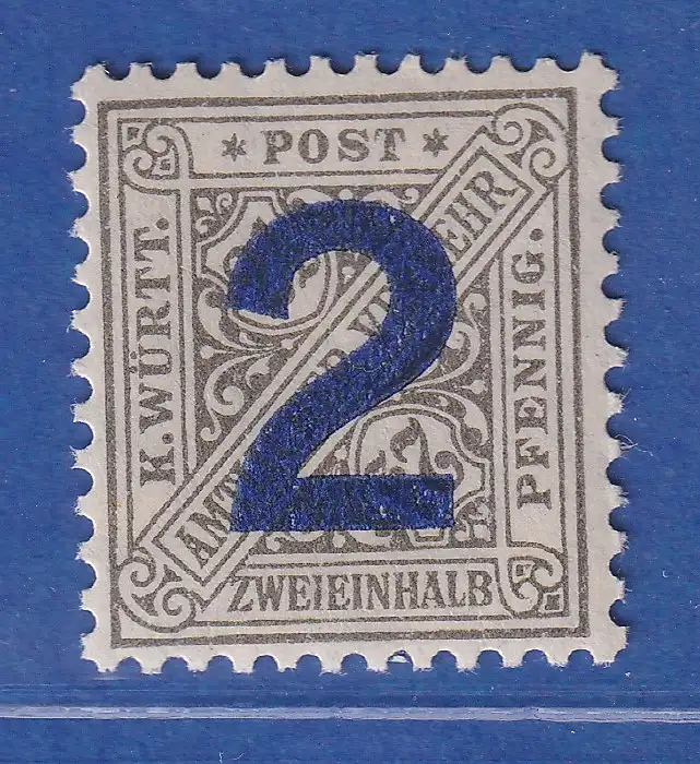 Württemberg 1919 Dienstmarke mit Aufdruck 2 auf 2 1/2 Pfg Mi.-Nr. 257 **