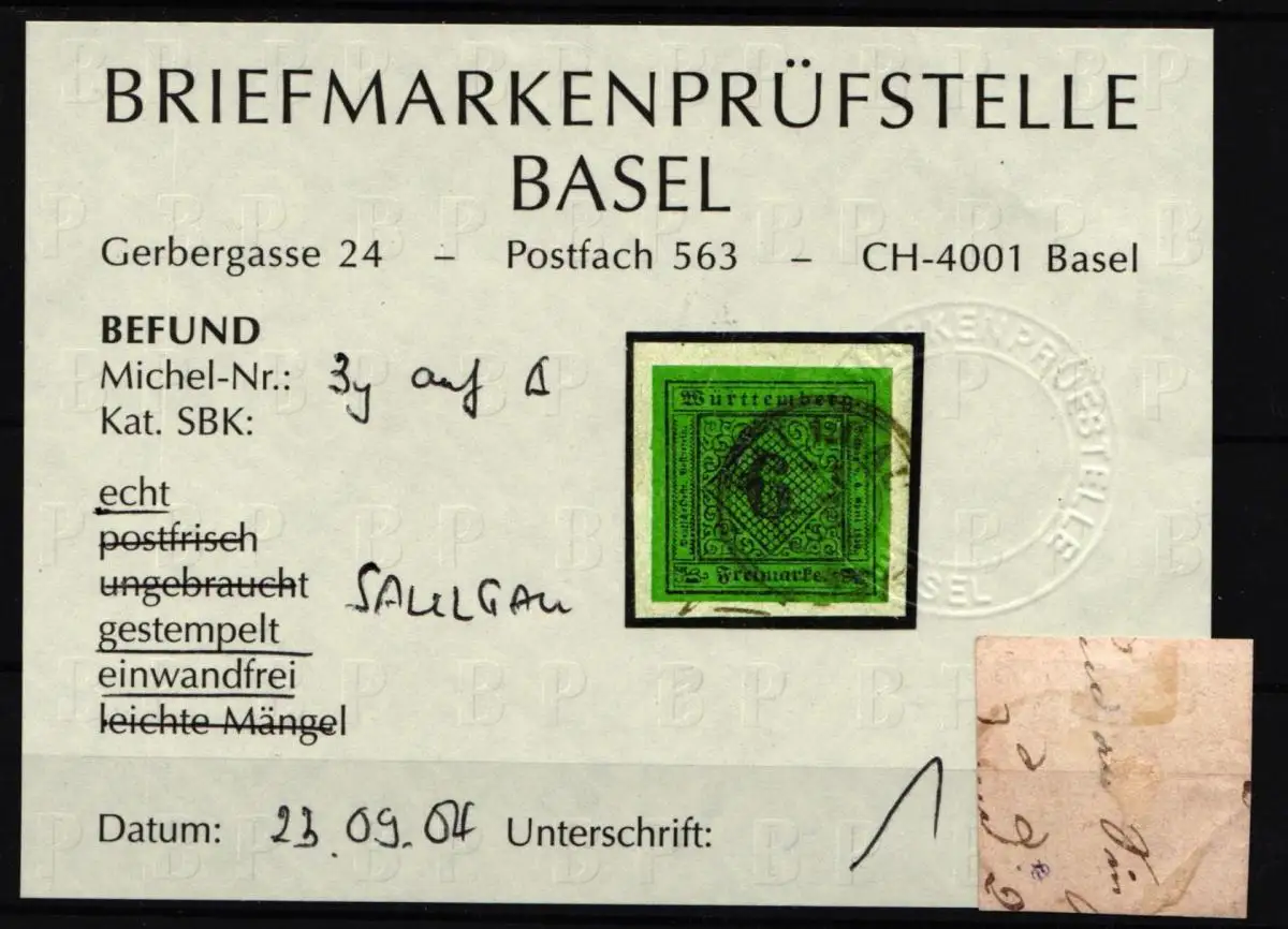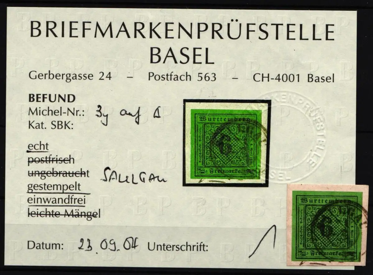 Württemberg 3 y gestempelt Befund Basel #IS139
