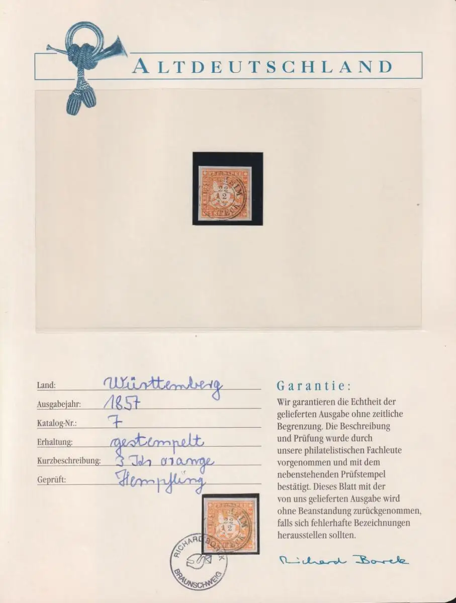 Württemberg 7 gestempelt Borek Garantie #KZ184