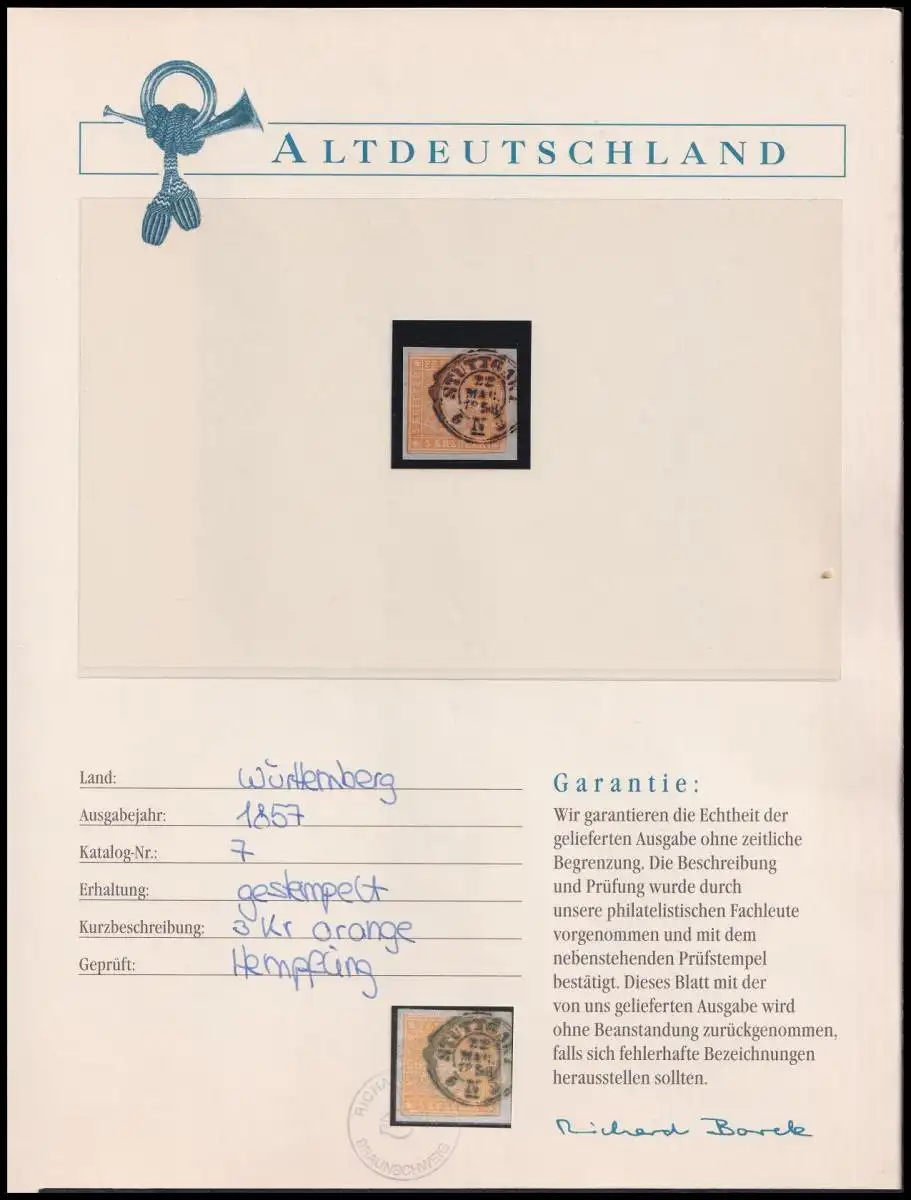 Württemberg 7 gestempelt Borek Garantie #OB012