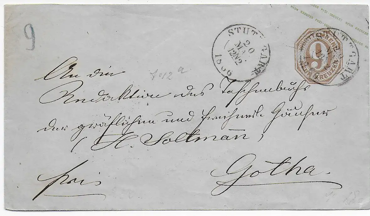 Württemberg: Brief aus Stuttgart nach Gotha 1886