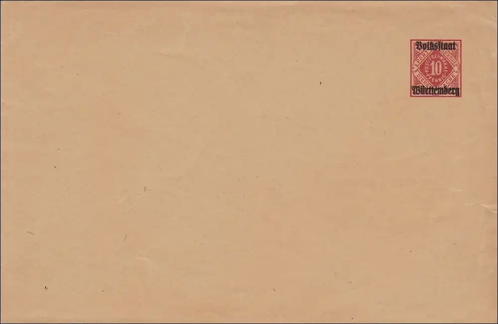 Württemberg: Ganzsachenumschlag Volkstaat Württemberg