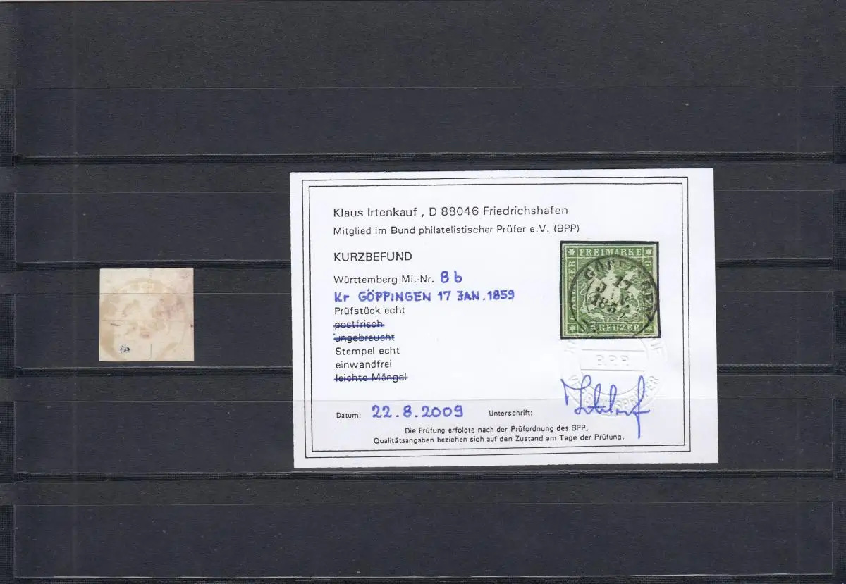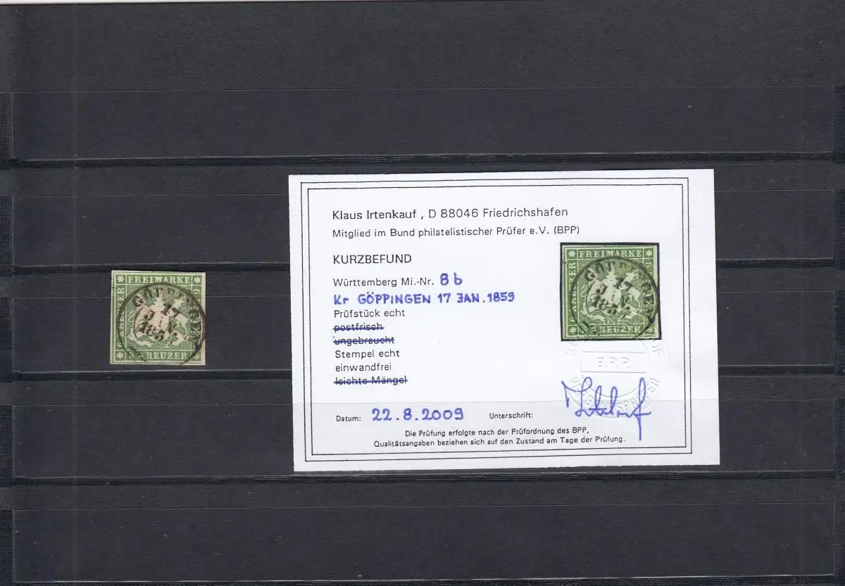 Württemberg: MiNr. 8b, gestempelt Göppingen, BPP Befund