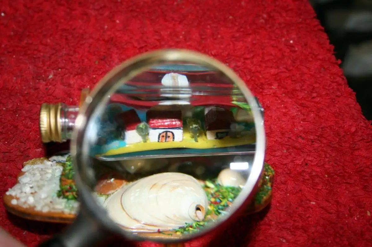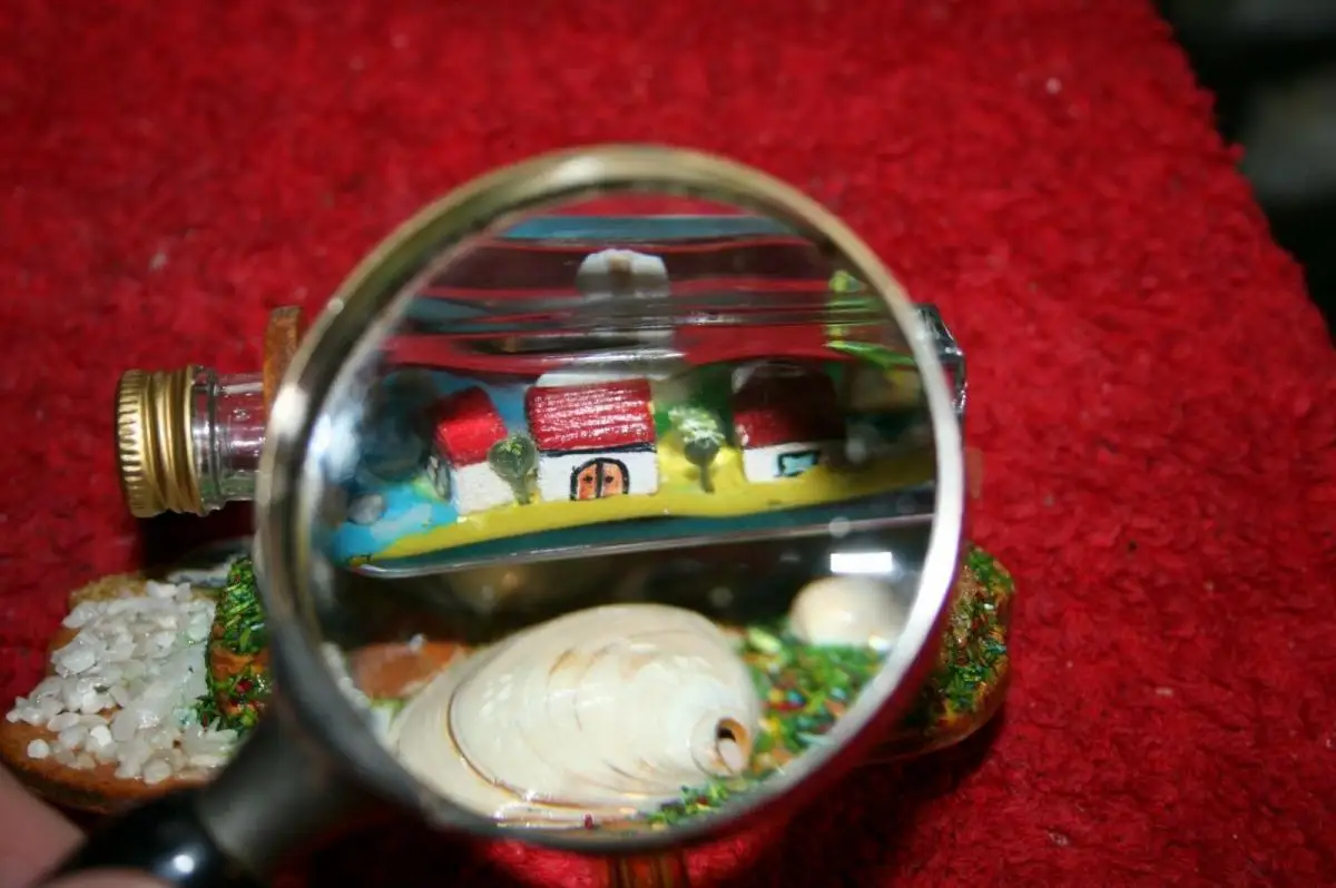Kunstwerk in einer kleinen Kümmerlingflasche
