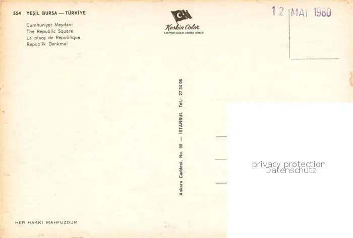 Yesil_Bursa Cumhuriyet Meydani Yesil Bursa postalisch nicht gelaufen 1980 Erhaltung siehe scans [WerneD78] WernPID7