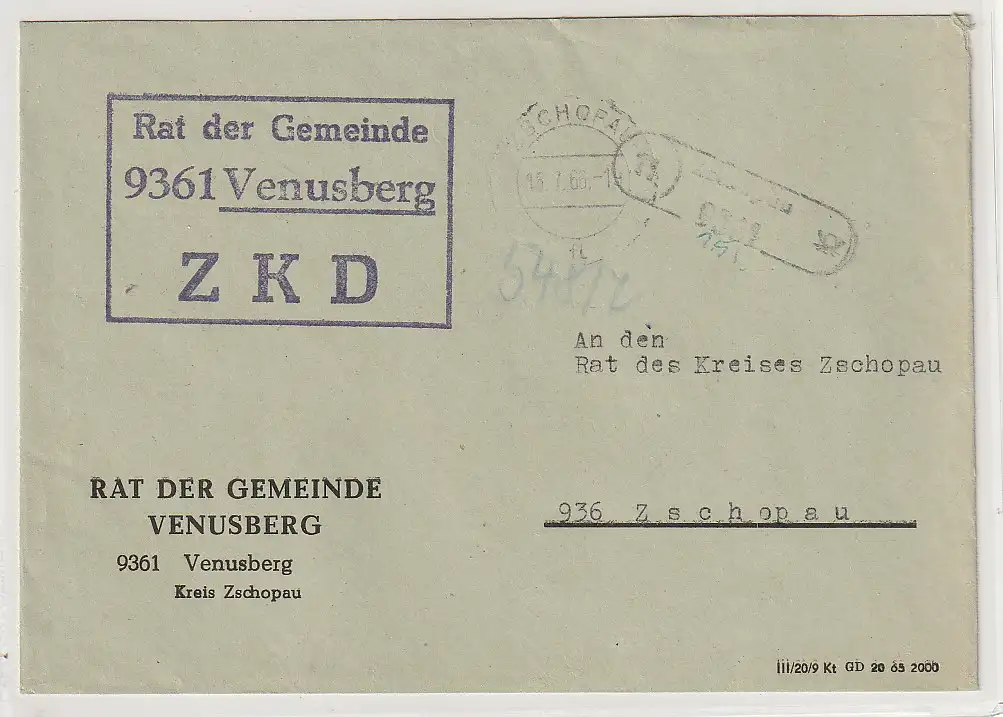 ZKD-Brief über Postnebenstelle Venusberg