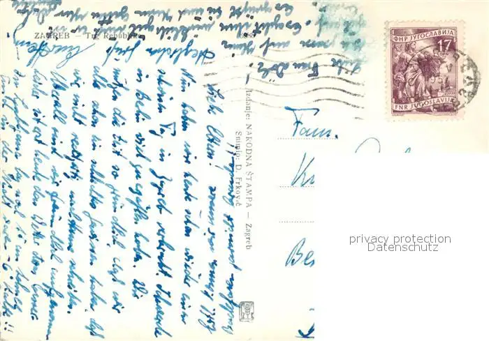 Zagreb Trg Republike Platz der Republik Zagreb postalisch gelaufen 1957 Erhaltung siehe scans [FriedD77] Frierer